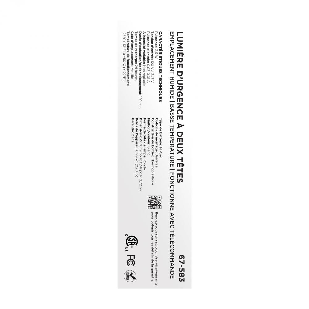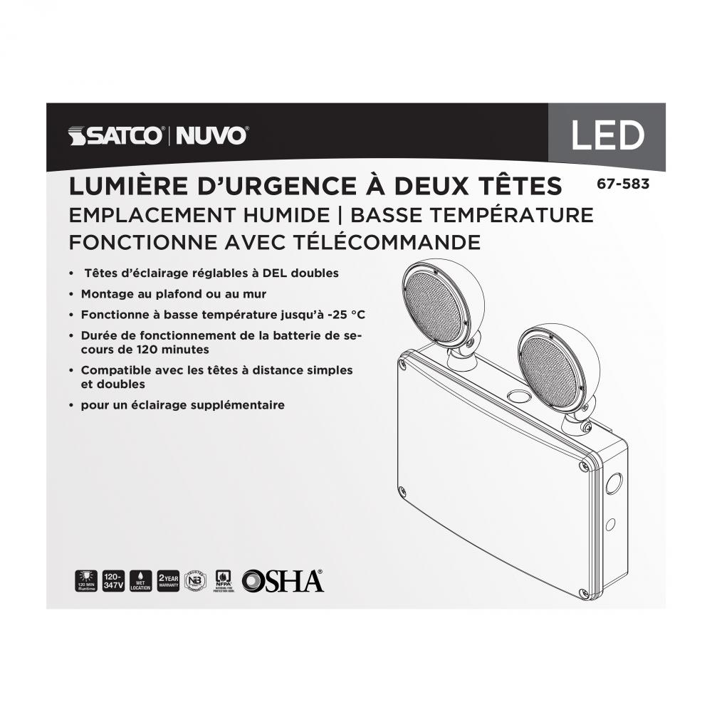 Keep your building safe and secure with SATCO NUVO 67-583 LED Emergency Lights. Two adjustable light heads provide ample illumination in the event of an emergency for up to two hours with the integrated battery backup. All models are wet location rated for