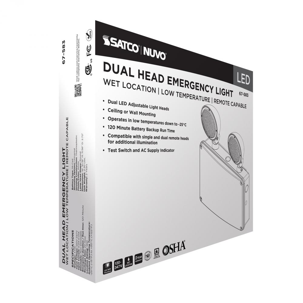 Keep your building safe and secure with SATCO NUVO LED Emergency Lights. Two adjustable light heads provide ample illumination in the event of an emergency for up to two hours with the integrated battery backup. All models are wet location rated for use in