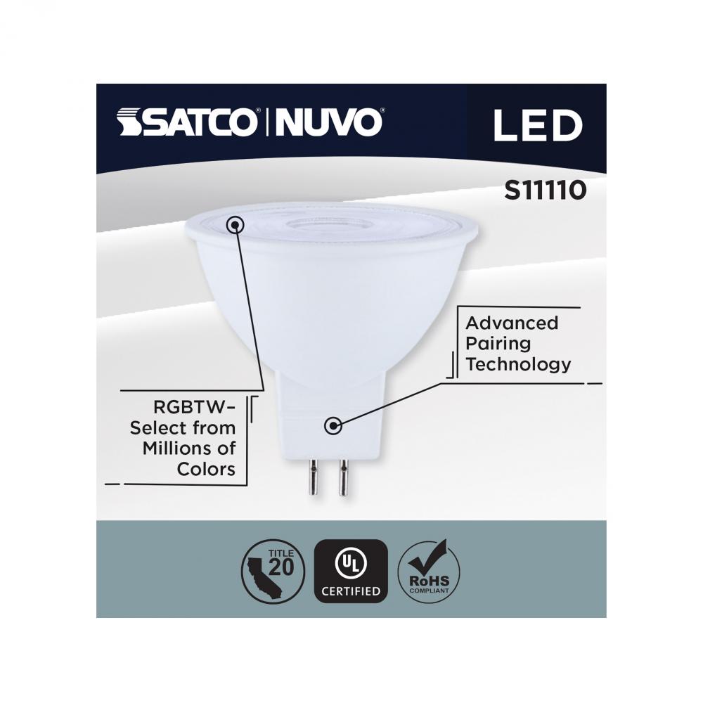 SATCO NUVO'S STARFISH SMART MR16 bulb, S11110, with a GU5.3 base brings customizable lighting to the home with style and ease. Delivering 90+ CRI color accuracy, this bulb offers tunable white light (2700K–5000K) and millions of RGB colors to create