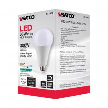 Ultra Bright Utility Lamp; 36 Watt; PS30 LED; Dimmable; White Finish; Medium Base; 4000K; 120 Volt; High Lumen